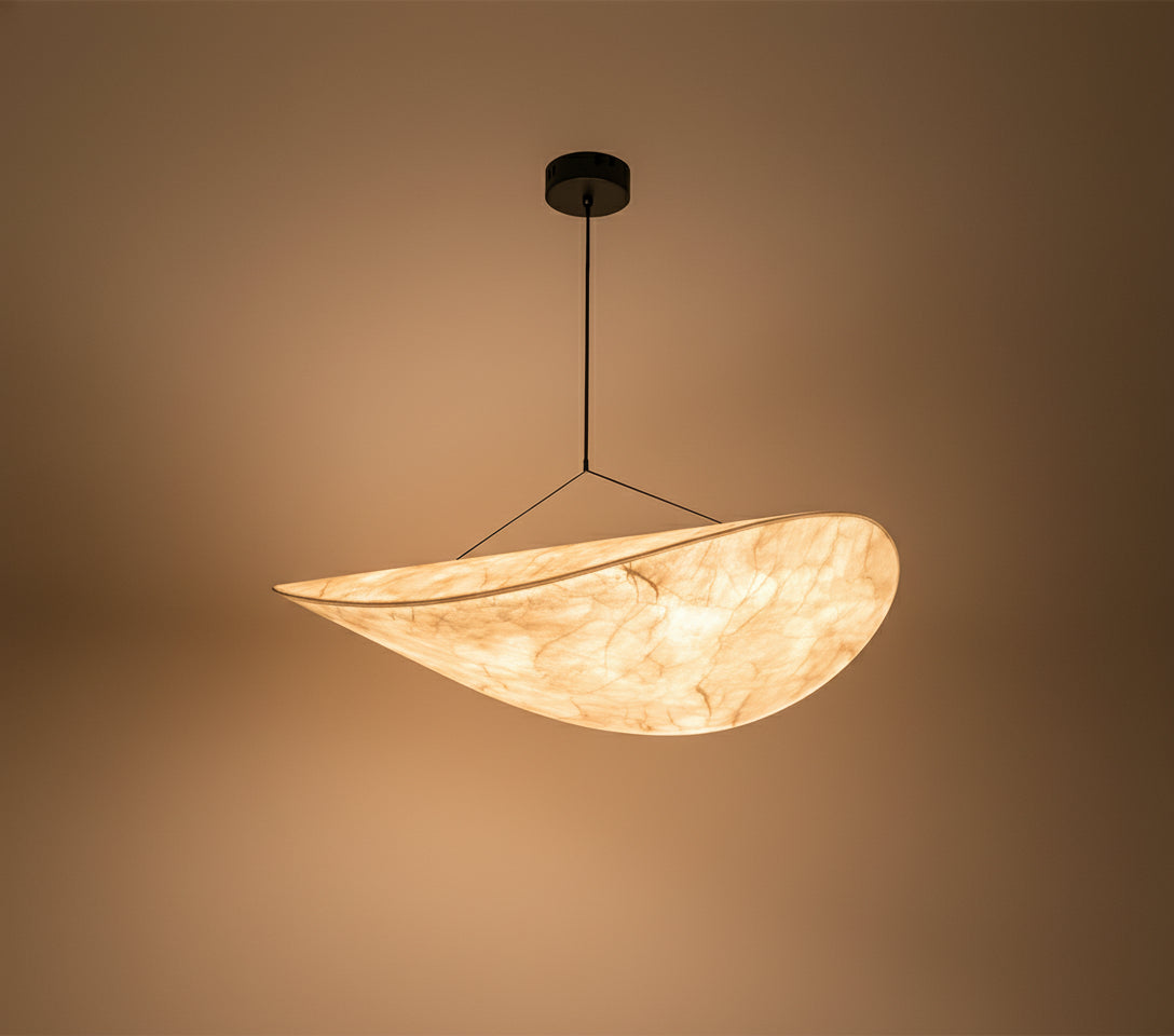 מנורת תלייה ייחודית בעיצוב אורגני זורם, המעניקה לחלל אווירה חמימה, יוקרתית ואמנותית שלא ניתן להתעלם ממנה.