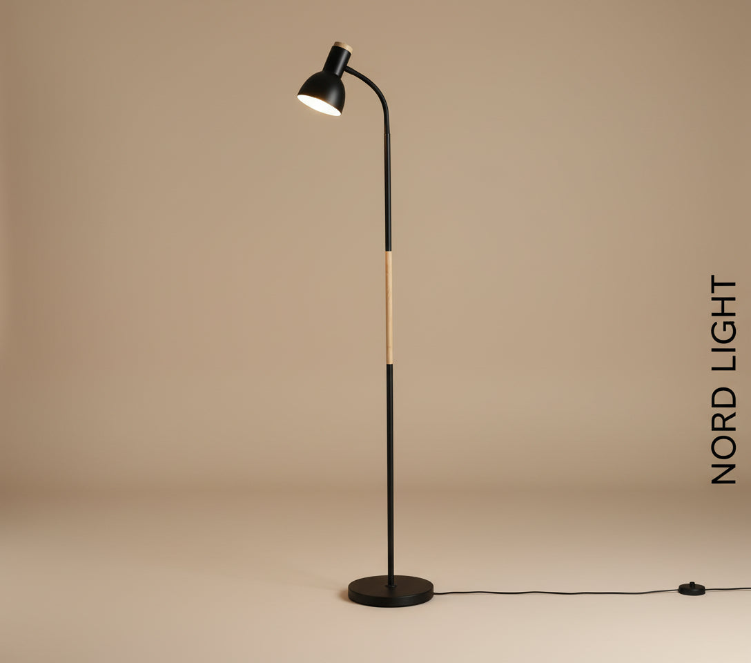 מנורת רצפה גבוהה שחורה עם נגיעת עץ – דגם זניט