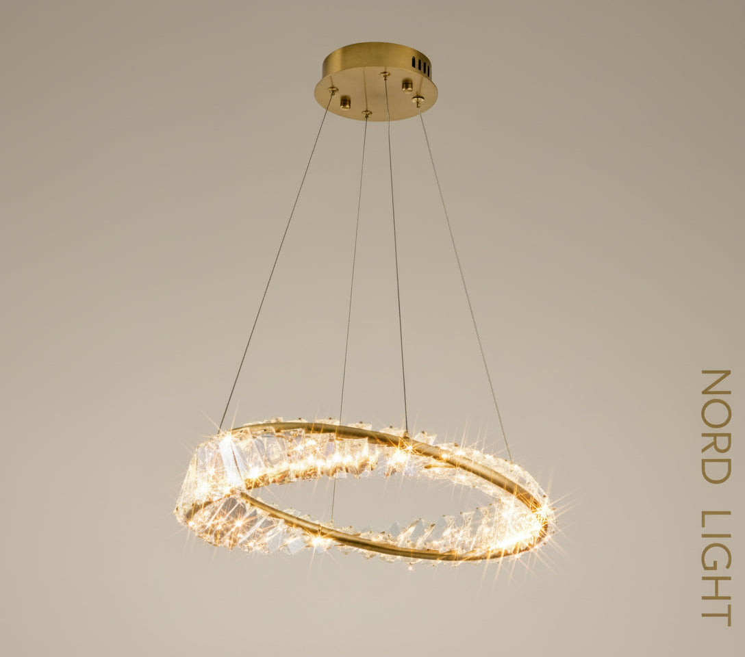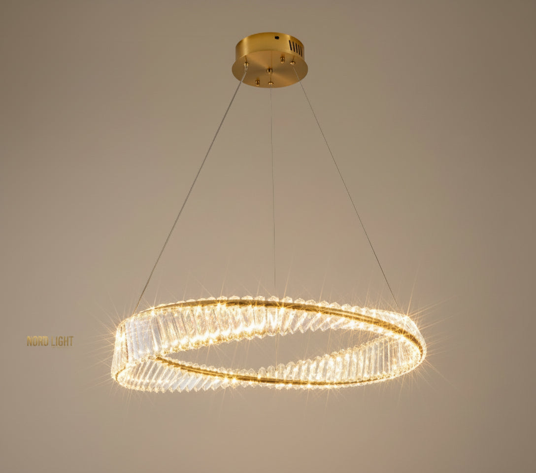 הכירו את פירנצה מסובב, גוף תאורה שנראה כמו יצירת אמנות מרחפת – שילוב מדויק בין פליז מוזהב יוקרתי לבין גבישי קריסטל חתוכים בקפדנות, היוצרים טבעת מסתובבת בעלת אפקט אור נדיר ומרהיב. כל תזוזה קטנה של הצופה משנה את זוויות השבירה וגורמת לאור לנצנץ בעדינות ובאלגנטיות.