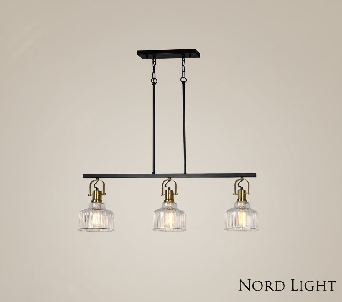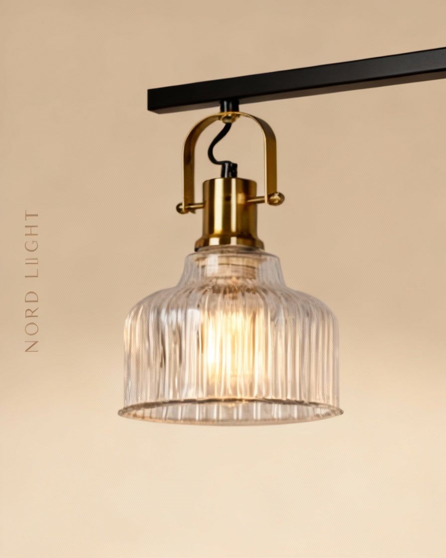 שלישיית רטרו על מסילה – גוף תאורה תלוי בעיצוב זכוכית מחורצת