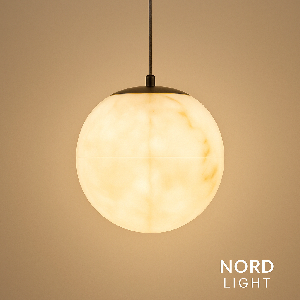 כדור תאורה מרשים בעיצוב דמוי-שיש, המעניק לחלל מראה יוקרתי, חמים ומעוצב – בלי לשלם את המחיר הגבוה של שיש אמיתי.