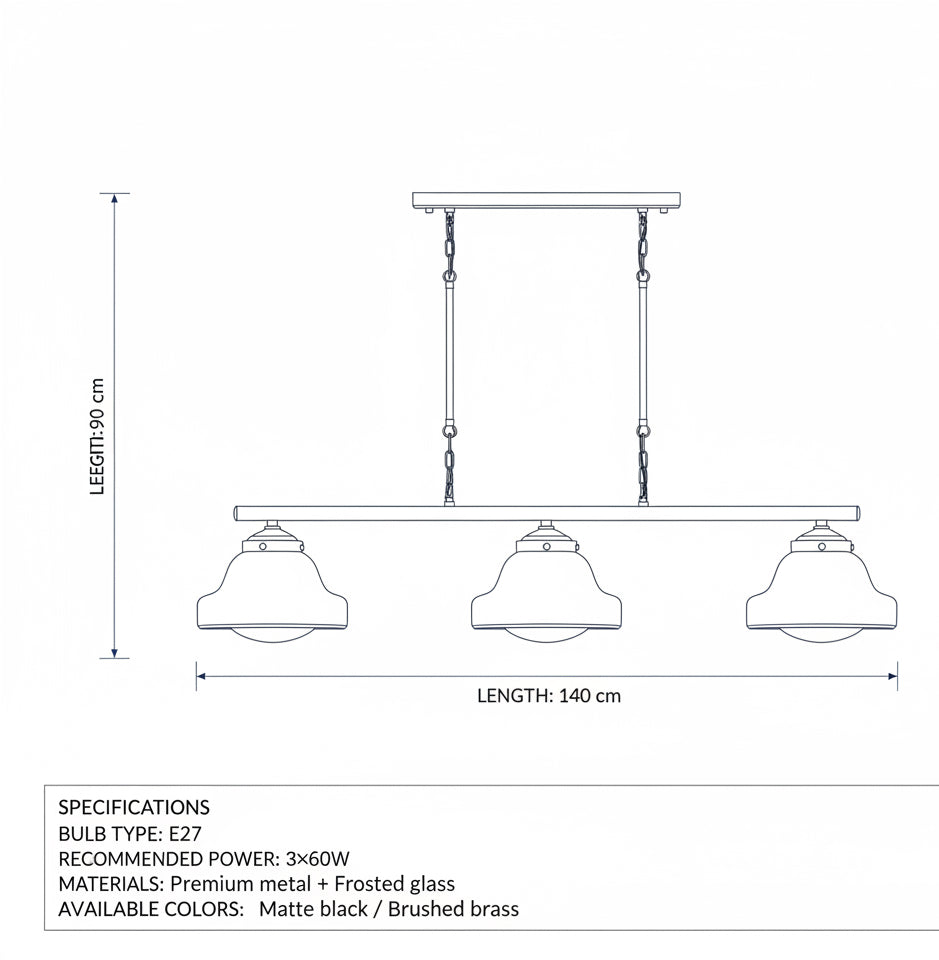 Aurelia Retro Bar 310 – גוף תאורה תלוי שלישייה בסגנון רטרו מודרני, זכוכית חלבית, צבע שחור או פליז